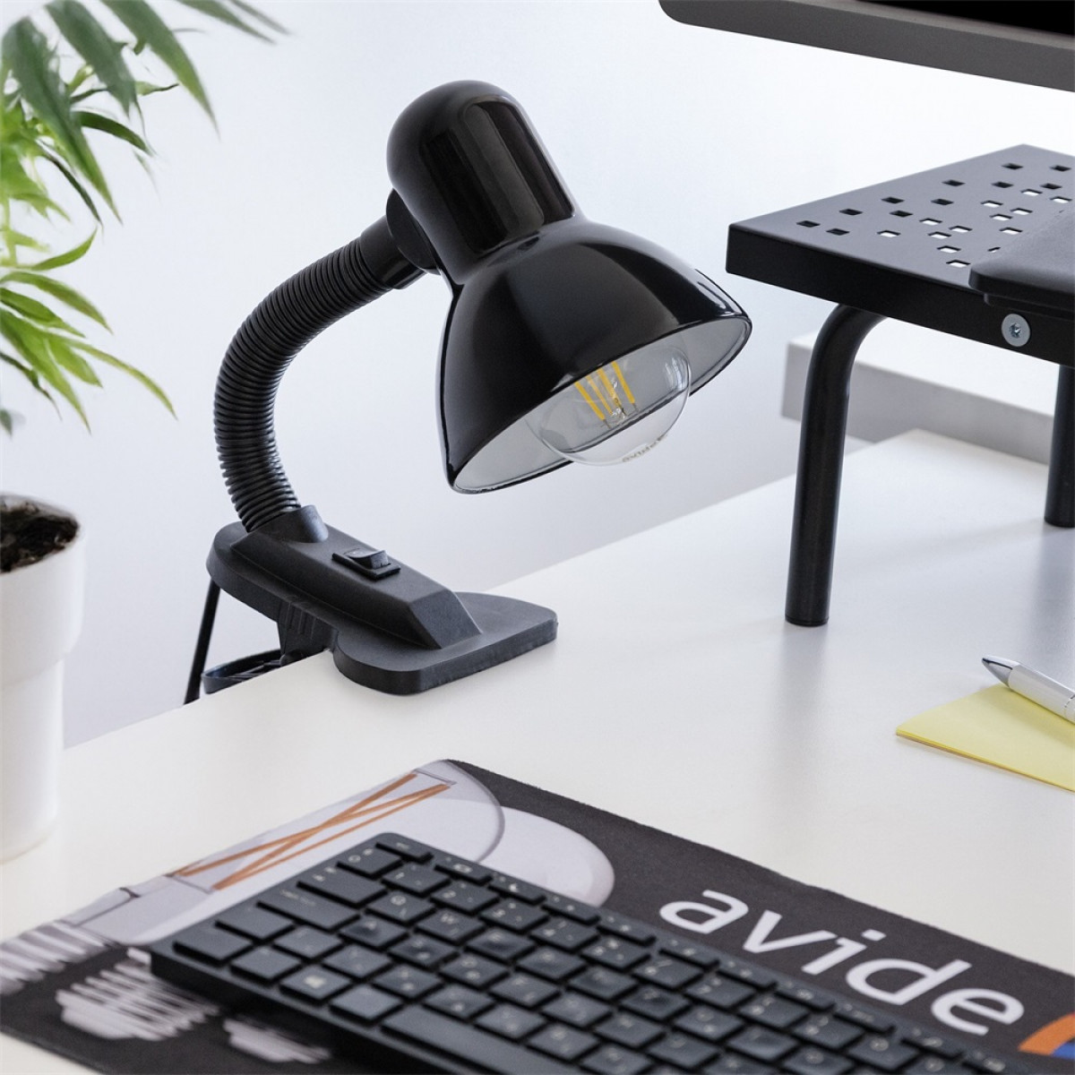 Asztali lámpa, AVIDE Basic csiptethető, max 60W, fekete bemutatása