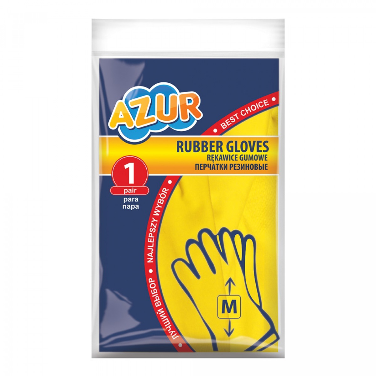 Gumikesztyű M háztartási Azur praktikus és tartós védőkesztyű, amely ideális mindenféle háztartási és kerti munkához. Hatékony védelmet biztosít a kéz számára a víz, a szennyeződések és a tisztítószerek káros hatásaival szemben, miközben kényelmes viseletet nyújt a mindennapi használat során.